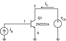 Henceforth, steps shall be identified by letters as follows: C for calculations, M for measurements, and S for SPICE simulation. Moreover, each measured value should be expressed in the form X±DX ( e.g. bF = 125± 1), where DX represents the estimated uncertainty of your measurement, something you have to figure out based on your learnings in ENGR 300. Forward-Active Characteristics: The PSpice model used in the above examples is based on typical 2N2222A parameter values as reported in the data sheets. An actual BJT sample exhibits its own set of parameters, and we will measure some of them to gain an idea of its departure from typical data.