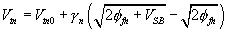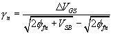 where k, also in A/V2, is called the process transconductance parameter; and Wn and Ln, both in mm, are the channel width and channel length of the MOSFET. If Vtn > 0, the nMOSFET is said to be of the enhancement type; if Vtn < 0, it is said to be of the depletion type. The threshold voltage Vtn depends on the body bias voltage VSB as