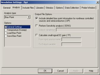 perform a bias point calculation. Set up the circuit as shown in fig.