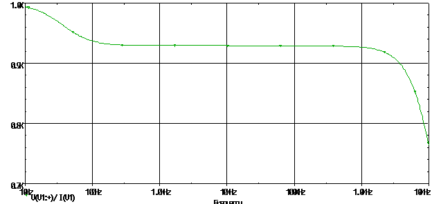 - In the Probe window, add the trace of V(V1:+)/ I(V1), where